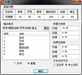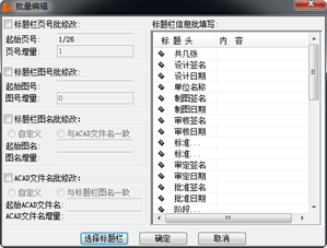 LEDAS-PM 调用菜单或点击面板上的按钮[SWORKS]------[图纸批处理] 选择相应项目/设备或目录后,对话框中罗列出图纸的页号、图号、图名等标题栏信息,以及图纸的图幅、安装位置、ACAD文件名等信息。 1)文件排序 点击列表头中的页号、图号、图名,可自动排序;默认按页号排序。 也可选中单个或多个文件进行拖动调序。 2)文件编辑修改 双击可直接打开所选文件; 对列表中的文件可进行添加、插入、编辑、删除等操作。点击“编辑”弹出对话框: 修改完成,点击确定,无须打开图纸,即可实现图纸信息的联动修改。 3)标题栏批编辑 选择图纸,点击“标题栏批编辑”,弹出对话框: 可对选中的文件进行页号、图号、图名、ACAD文件名的批修改;可根据已定义的图名,批修改文件名;或者根据已定义的文件名,批修改图纸标题栏中的图名。 4)标题栏批转换 选择图纸,点击“标题栏批转换”,弹出对话框: 可对所选图纸进行标题栏批替换,并且可继承相同属性信息。 5)图纸目录生成 列表中的信息编辑修改后,便可进行图纸目录输出。 点击“输出设置”,弹出对话框 可设置表格、标题头、目录栏参数,选择文字对齐方式。 可点击“清空”按钮删除当前输出格式,双击下方的列名称可自定义表格列顺序。 点击“输出目录”,按命令行提示指定位置,系统自动绘制图纸目录 输出的目录图形可分段、分页放置。