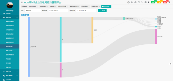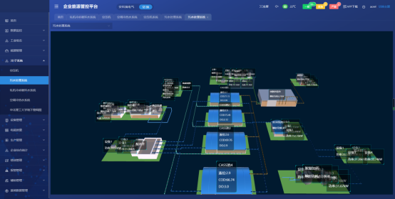 为水务搭建计量体系,显示水务的能源流向和能源损耗,通过能源流向图帮助水务分析能源消耗去向,找出能源消耗异常区域。