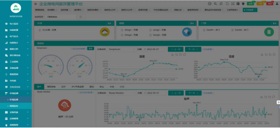 监测变压器、水泵、鼓风机的电流、电压、有功/无功功率、功率因数、负荷率、温度、三相平衡、异常报警等数据。